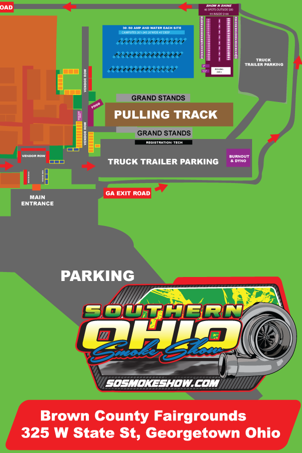 Get ready for the ultimate truck weekend in Southern Ohio! Join us June 26-27, 2026, at the Brown County Fairgrounds in Georgetown, Ohio for two full days of high horsepower competition, tire smoke, and fierce competition. Your ticket gets you access to view all the action — dyno runs, burnout contest, dirt drags, truck pulls, and Show N Shine. All truck types welcome. Weekend passes are $30, single day passes are $15, and kids 10 and under get in free. Food trucks will be serving up grub both days, and we're rolling rain or shine.Leave the golf carts, SxS, and 4-wheelers at home—this one's all about the trucks.
